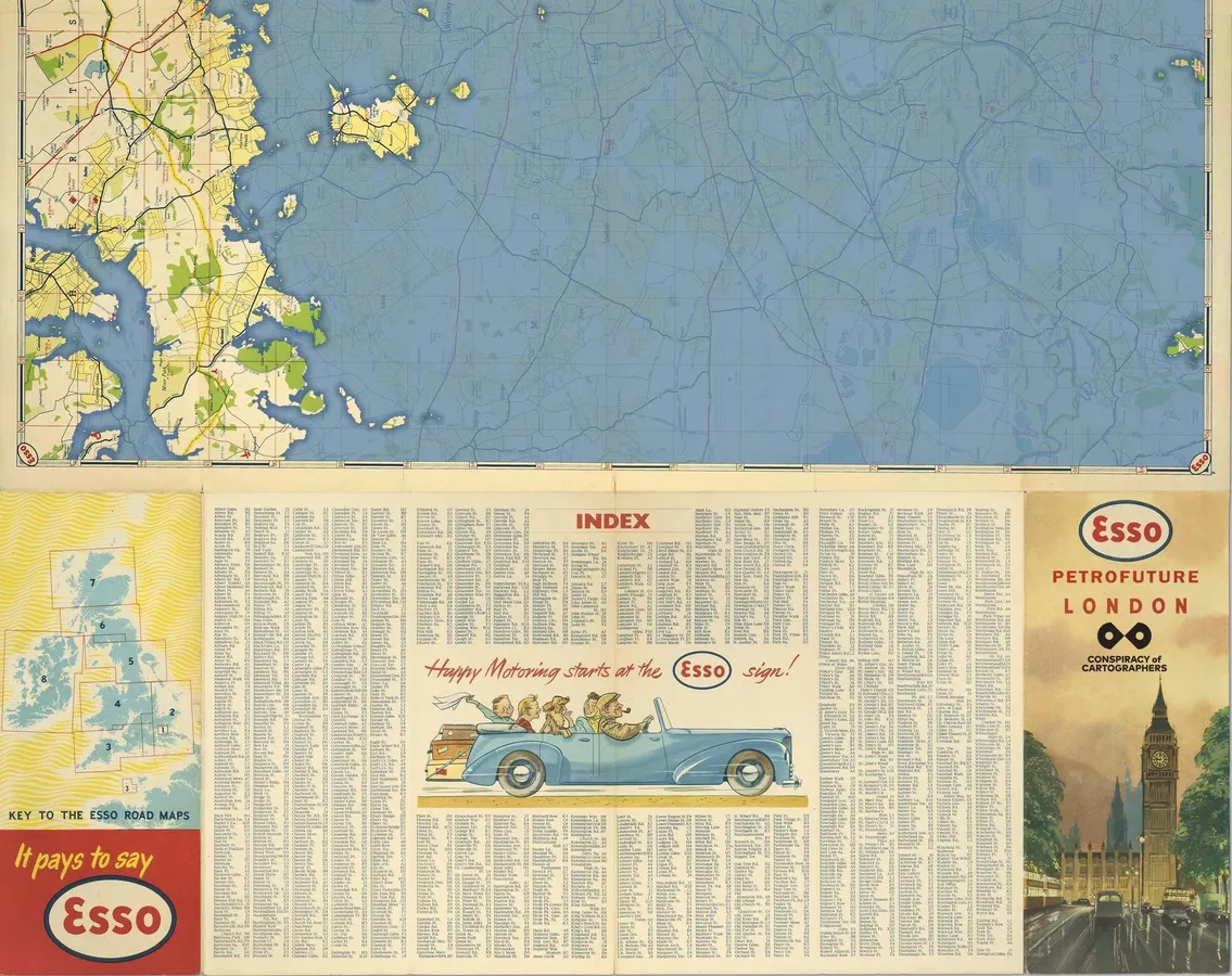 Consipracy of Cartographers/Jeffrey Linn“These maps were given away free at gas stations. They were essentially advertising, which is a form of propaganda, so my maps are anti-propaganda,” says Linn. “Petrol corporations spend billions today telling us they care about the environment, and this is my small way of counteracting that, using nostalgia to point out their greenwashing.”