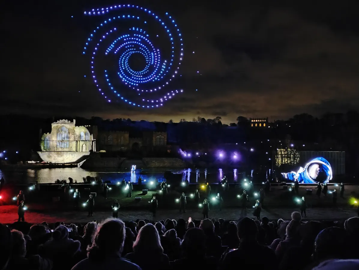 Inspired by conversations with local historians, All Change brought history to life with large-scale set pieces, including a working, full-size replica of the 1825 Locomotion locomotive. There was also visual feast thanks to a drone show from Skymagic, a global events company based in the north of England. The show was made possible with the support of 140 local volunteers, including 60 performers.