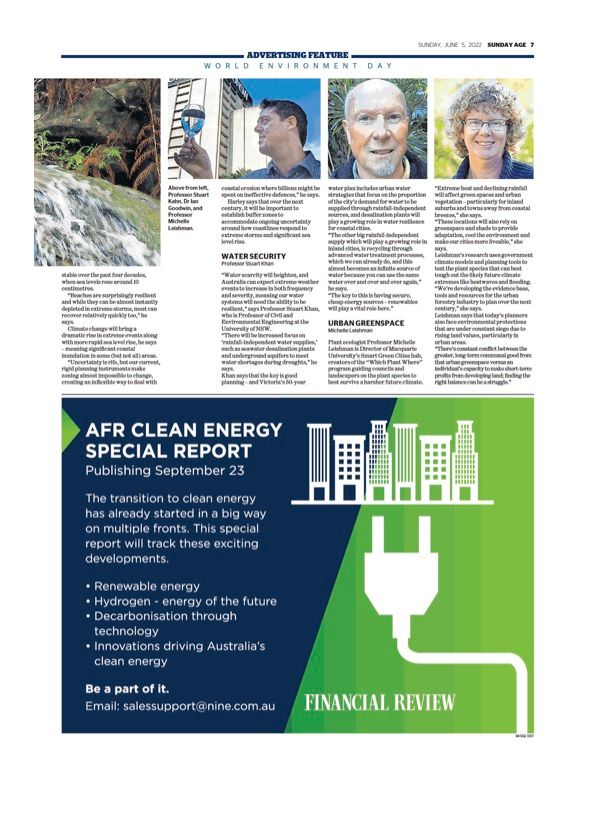 Plant ecologist Professor Michelle Leishman is Director of Macquarie University’s Smart Green Cities hub, creators of the ‘‘Which Plant Where’’ program guiding councils and landscapers on the plant species to best survive a harsher future climate. “Extreme heat and declining rainfall will affect green spaces and urban vegetation – particularly for inland suburbs and towns away from coastal breezes,” she says. “These locations will also rely on greenspace and shade to provide adaptation, cool the environment and make our cities more liveable,” she says. Leishman’s research uses government climate models and planning tools to test the plant species that can best tough out the likely future climate extremes like heatwaves and flooding. “We’re developing the evidence base, tools and resources for the urban forestry industry to plan over the next century,” she says. Leishman says that today’s planners also face environmental protections that are under constant siege due to rising land values, particularly in urban areas. “There’s constant conflict between the greater, long-term communal good from that urban greenspace versus an individual’s capacity to make short-term profits from developing land; finding the right balance can be a struggle.”