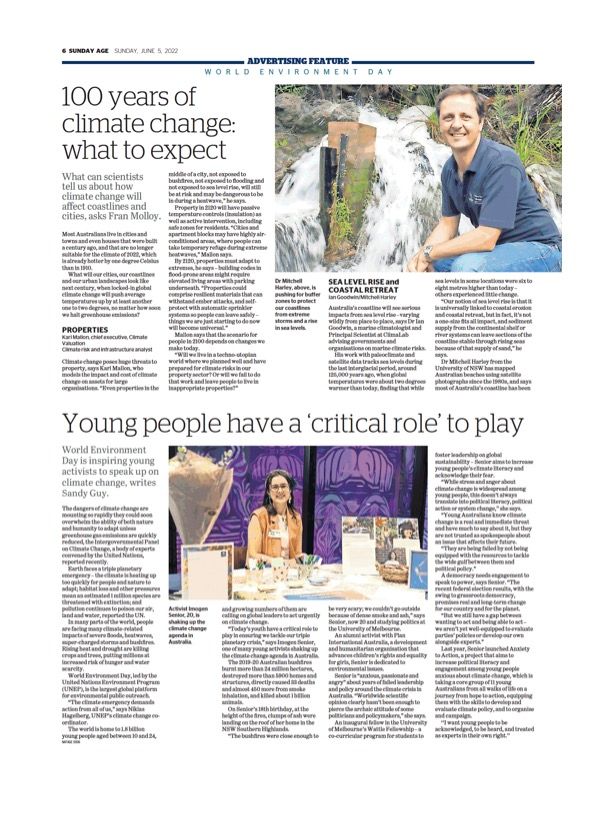 By 2120, properties must adapt to extremes, he says – building codes in flood-prone areas might require elevated living areas with parking underneath. “Properties could comprise resilient materials that can withstand ember attacks, and selfprotect with automatic sprinkler systems so people can leave safely – things we are just starting to do now will become universal.”