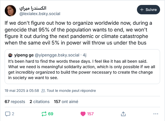 Even so, there are some people who won't even say "prosecute netanyahu". You shouldn't concern yourself with these people. Instead, focus on what you can do at your own scale. If they don't wanna stand on the right side of history, it's their problem, and they're the ones who'll have to explain themselves one day. If you have people like that among your friends, you could simply change friends. If it's people whose ties are ultimately impossible to truly cut, like family members, you can try convincing them, may God help you.