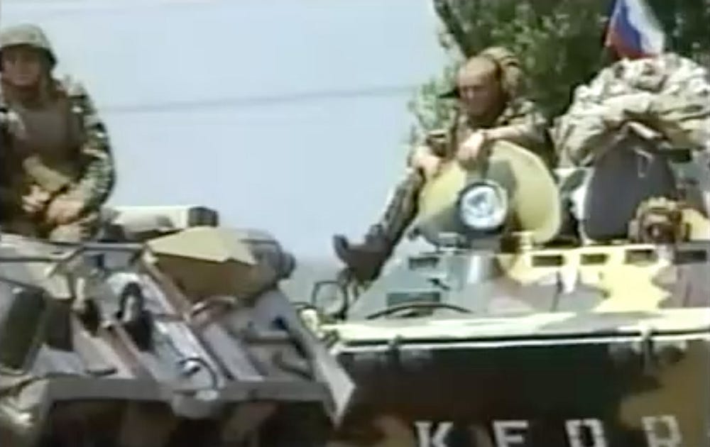At about 10:35, the two men turned on one of the TVs in the operations room and tuned it to CNN, hoping to see how the press was reporting the breakthrough in negotiations. What they saw instead amazed them. There, on the screen, were pictures of a column of about 250 troops and vehicles advancing out of Bosnia into Kosovo, with the letters KFOR painted hastily on them. The CNN presenter helpfully explained that viewers were seeing the Russian contingent of KFOR, which their sources said was now heading to the Kosovan capital, Pristina.