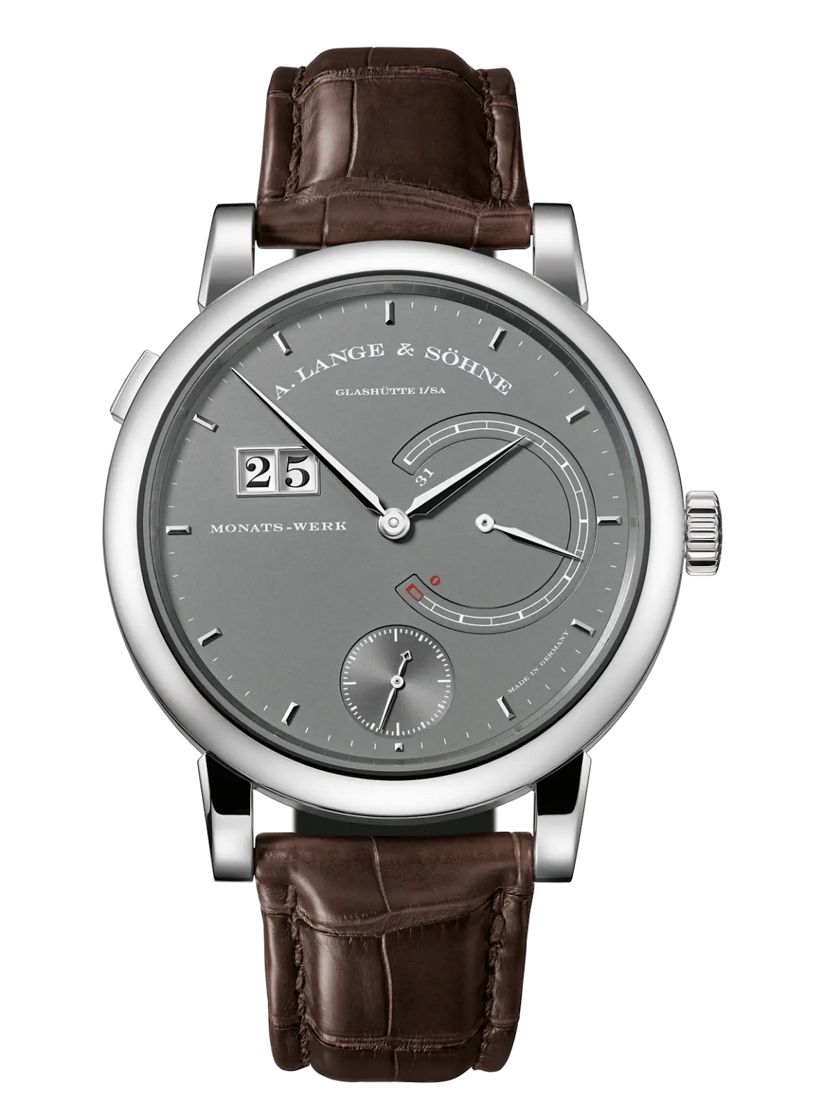The LANGE 31 is the world's first mechanical wristwatch with a power reserve of 31 days. Two mainsprings, each 1850 millimeters long—about ten times as long as in mechanical wristwatches with a conventional power reserve—deliver this magnitude of power.