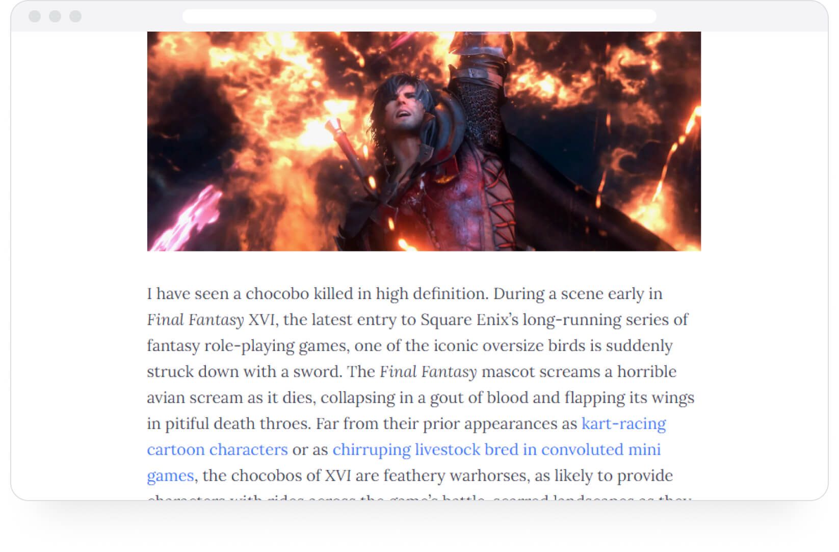 This writing sample of his is a review of the RPG Final Fantasy XVI.
