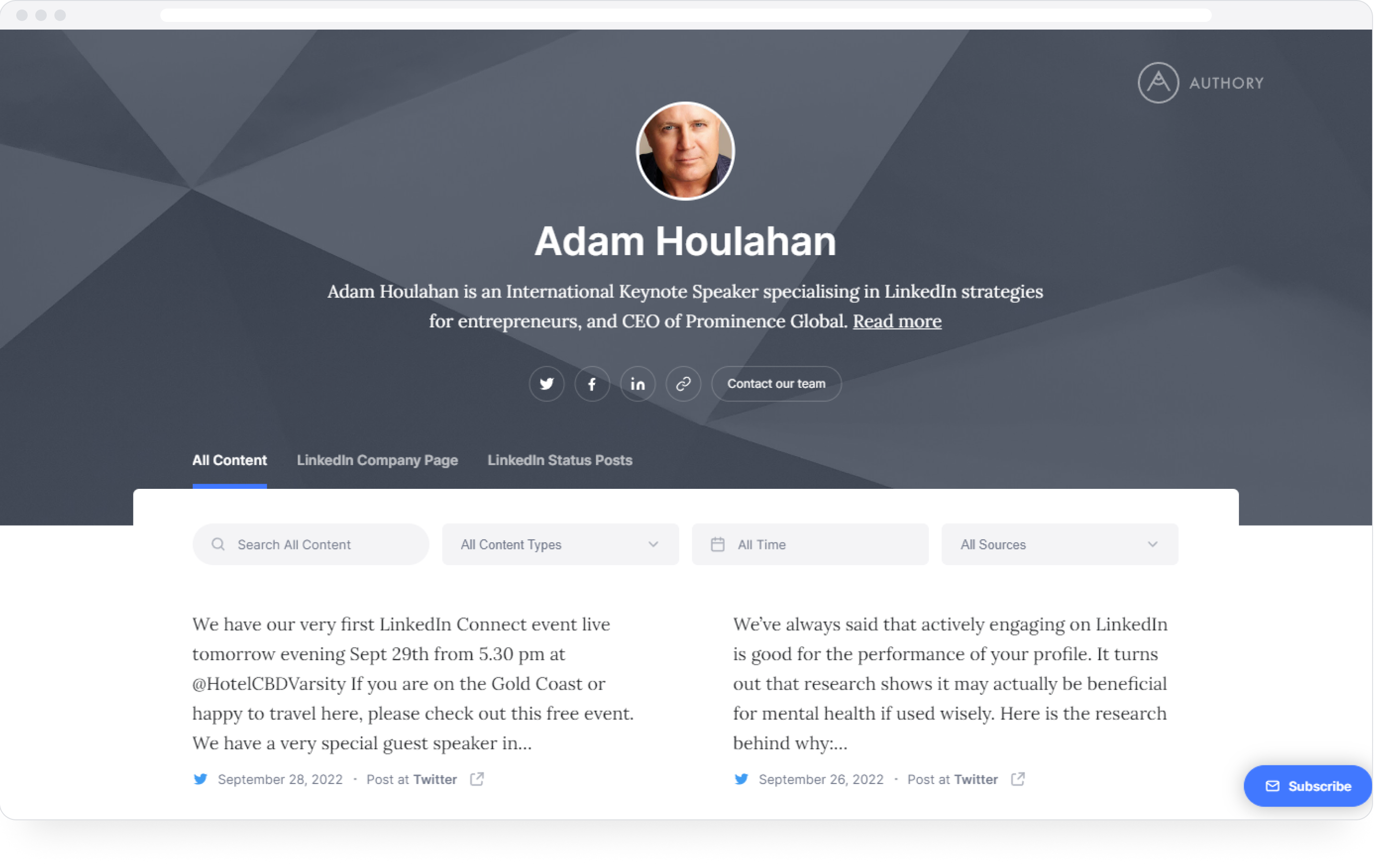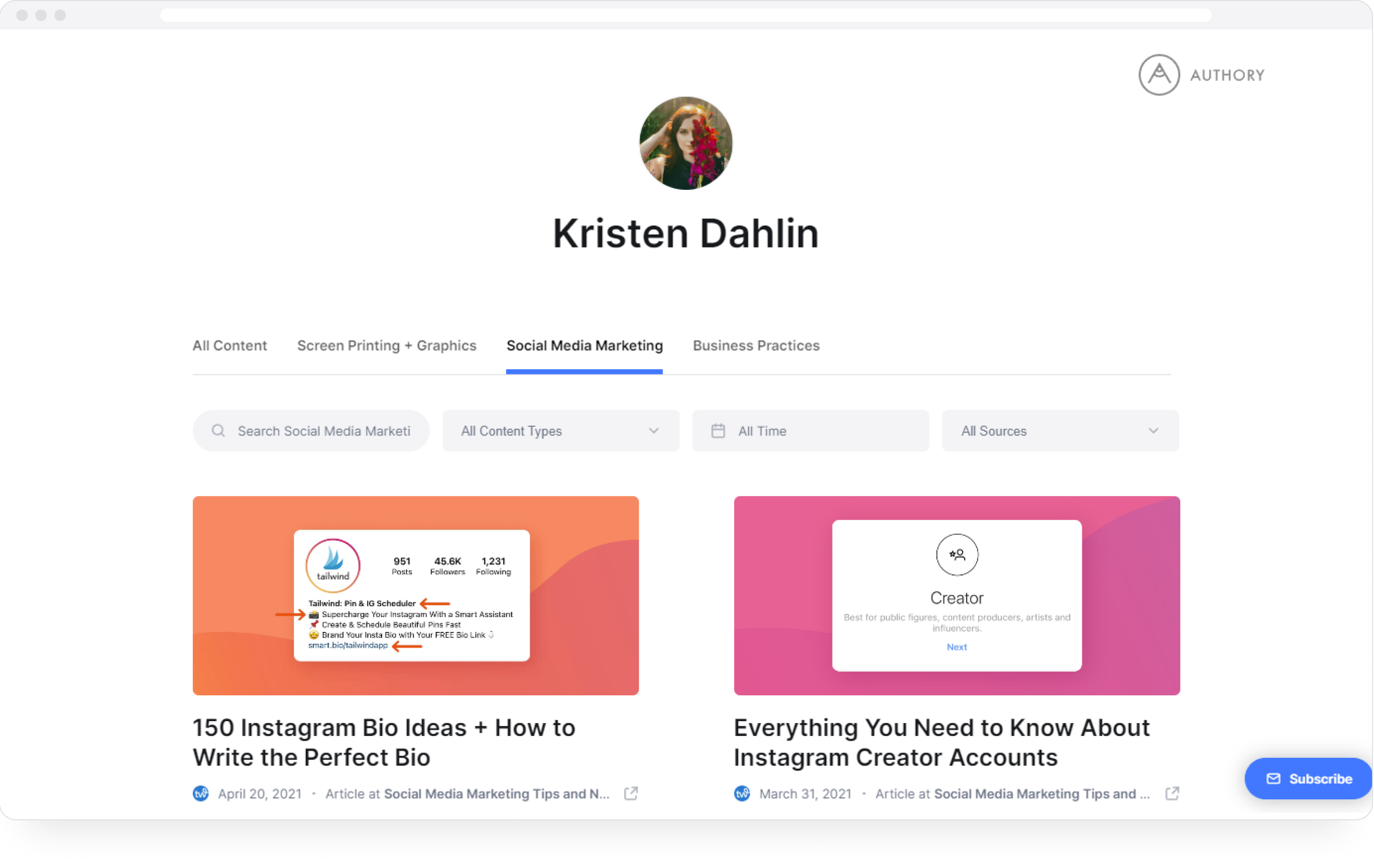 We’ve picked a few amazing social media portfolio examples that are all built using Authory!