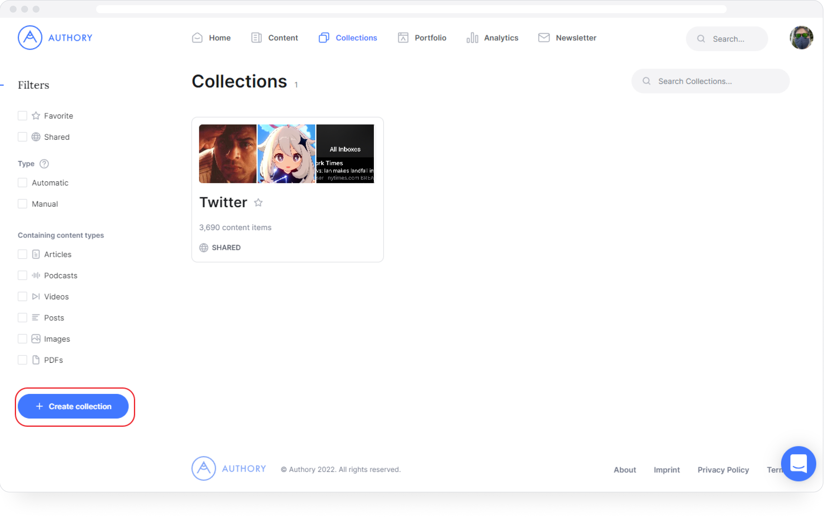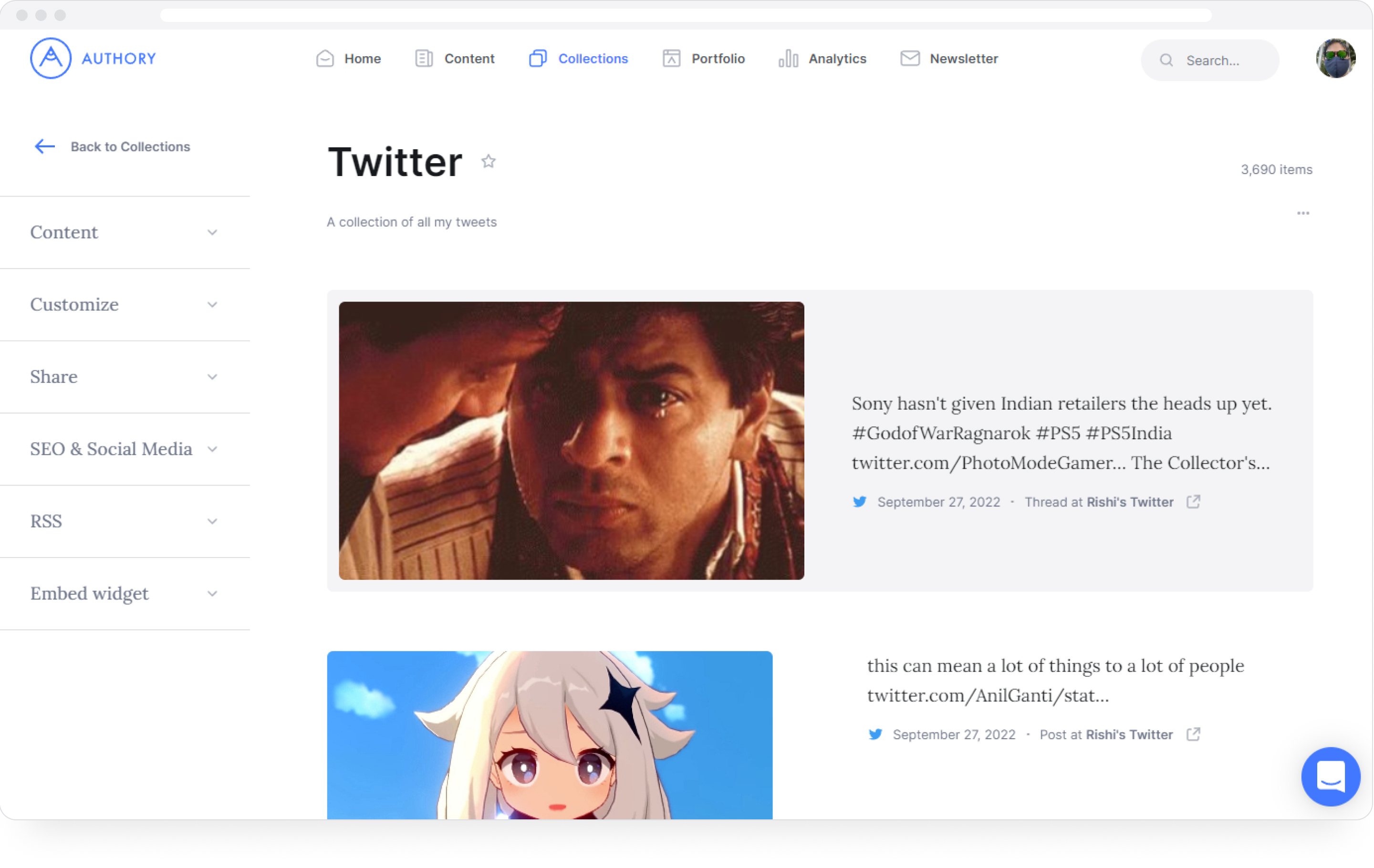 First, sign up for Authory for free, and then import your sources, social media or otherwise, into Authory.