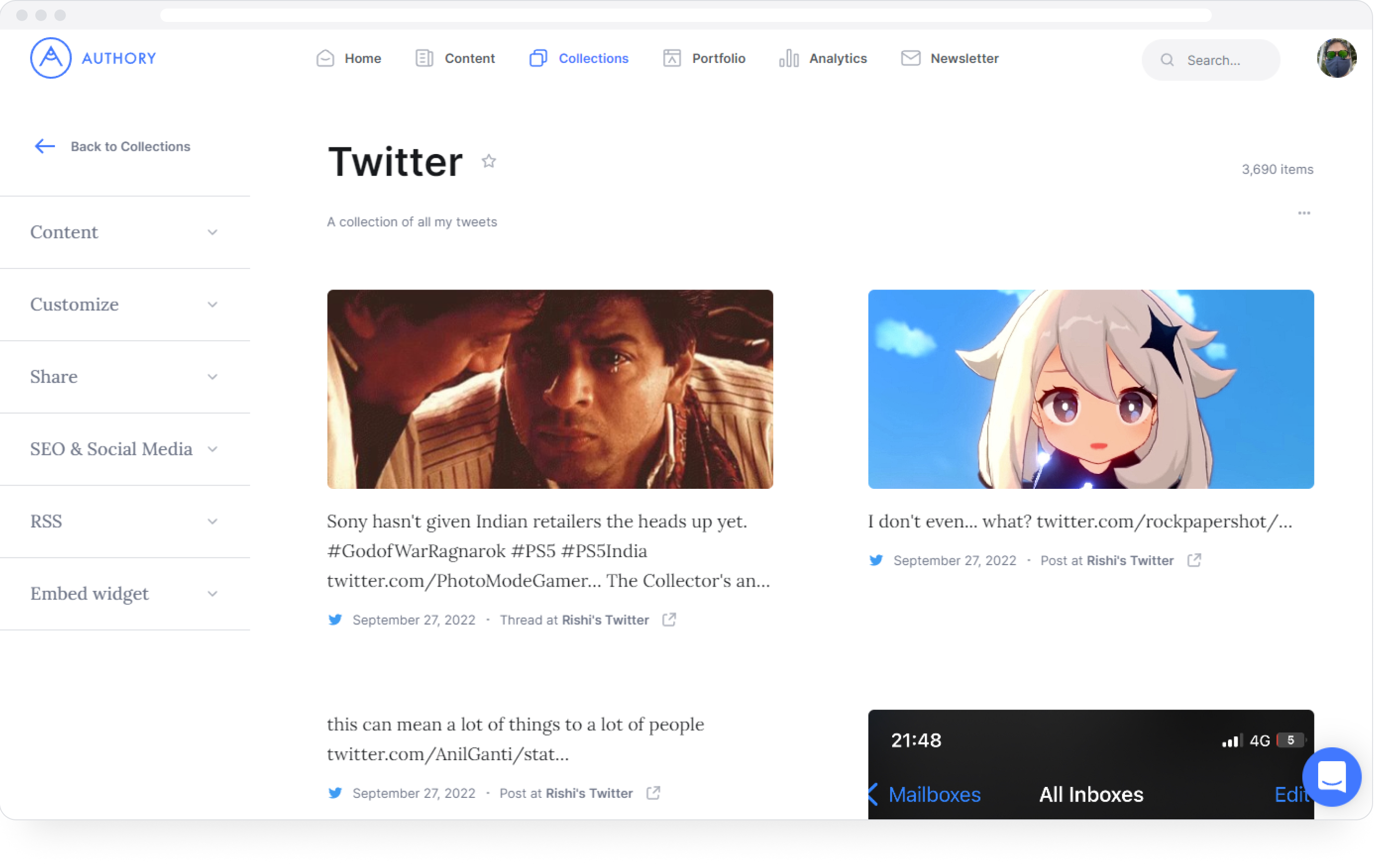 The next section will show you how you can get even more creative with your Authory portfolio with a few social media portfolio examples.